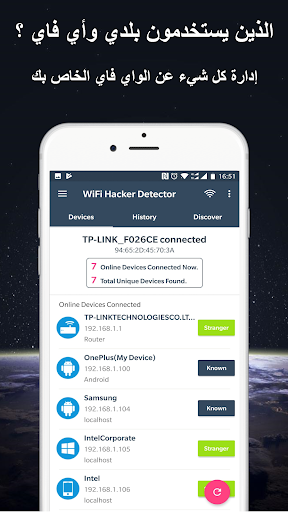 التطبيق (الكشف عن الذين يستخدمون واي فاي بلدي) يمكن بسهولة مسح واي فاي بلدي ونرى كم من الناس أو الأجهزة المتصلة جهاز التوجيه واي فاي الخاص بك مثل tplink / tp-link جهاز التوجيه، dlink التوجيه، جهاز التوجيه netgear أو جهاز التوجيه هواوي الخ.