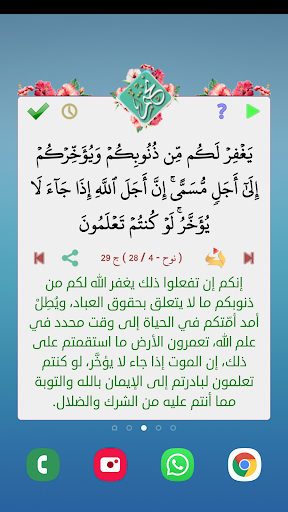 "Nakhtem" (نختم) helps you read a verse from the Holy Quran every time you use your phone. It enables you to complete the Quran (khatm).'