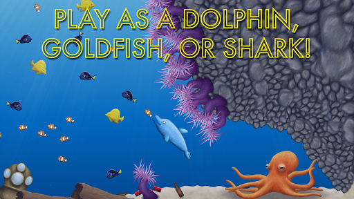 In addition to the goldfish, you can also play as a hungry dolphin and a ravenous shark. The dolphin starts off as an overworked aquarium star, forced to jump through flaming hoops for food. He escapes from captivity by eating his way through the aquarium and taking revenge on his trainer. The shark is the final playable character, an artificial fish created by scientists to save Earth's oceans. It uses self-replicating nano technology to consume everything in its path and convert their matter into its own. There's no telling how big this shark will get.
