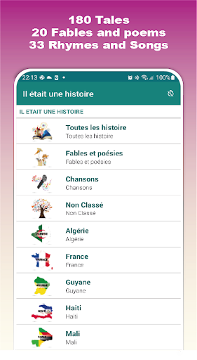 Discover our collection of 180 stories with audio! This app also offers +20 fables and poems as well as +33 songs